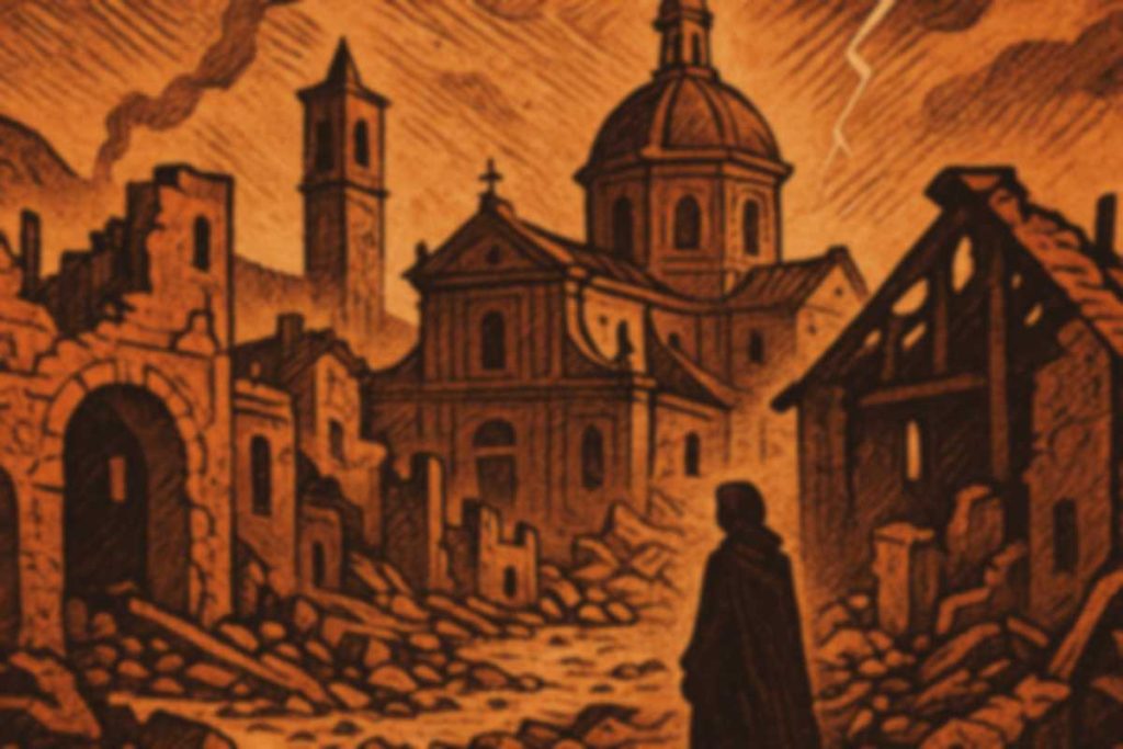 Il 11 aprile 1688, Ravenna fu colpita da un terremoto potente, uno di quelli che le cronache dell’epoca descrivono come “un fremito che attraversò chiese, saline, case e coscienze”. È un evento storico documentato — un sisma reale, violento, che aprì crepe nelle mura e nella vita delle persone.
